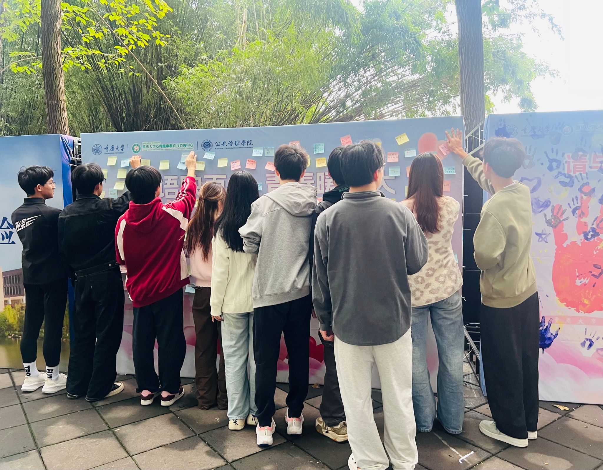 团委承办的“心语映百年,青春暖重大”心理赋能活动在沙坪坝校区A校园小竹林顺利举行。活动吸引了全校学生的积极参与,反响热烈。