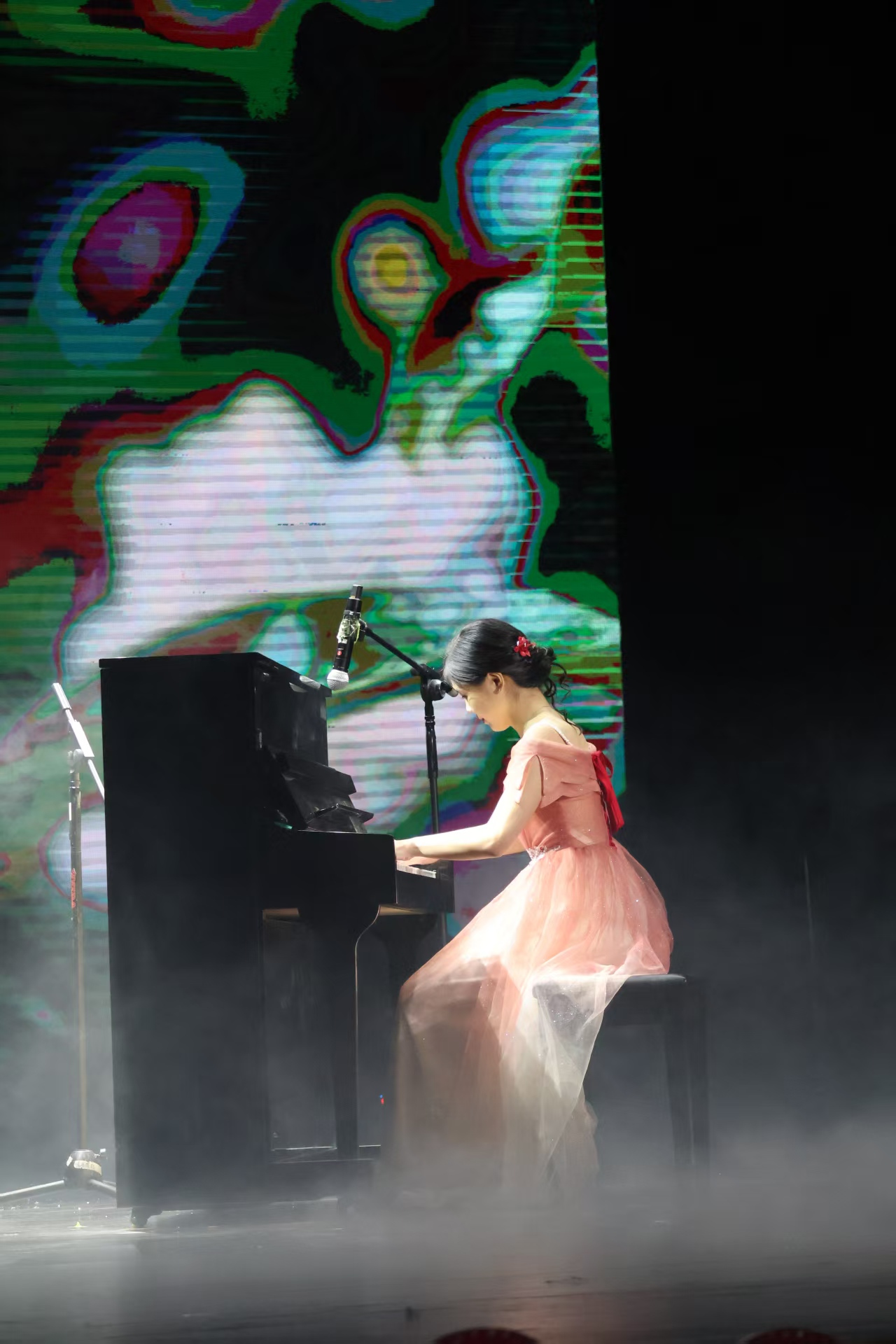随后,合唱《Who Says》,以坚定旋律唱响勇气与自我的成长宣言;配音表演《研究生版・甄嬛传》,将无码直播生活与经典IP巧妙结合,以创意改编引发全场共鸣;李凯老师倾情献唱的《心的祈祷》,用真挚歌声传递师生情谊与新年祝福;钢琴演奏《黄河韵・茉莉香》,以黑白琴键奏响山河壮阔与文化深情,刚柔并济的演绎令人沉醉。