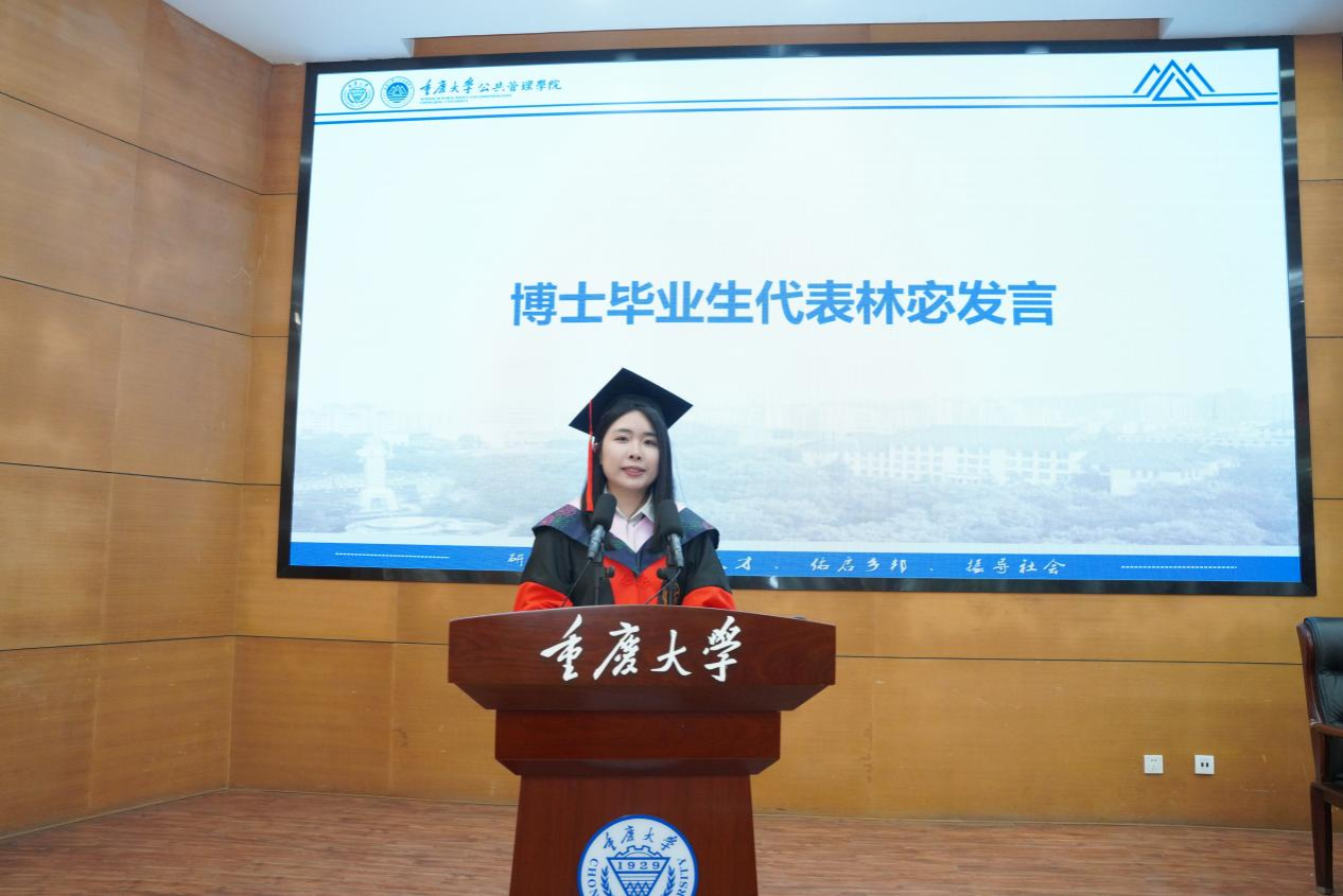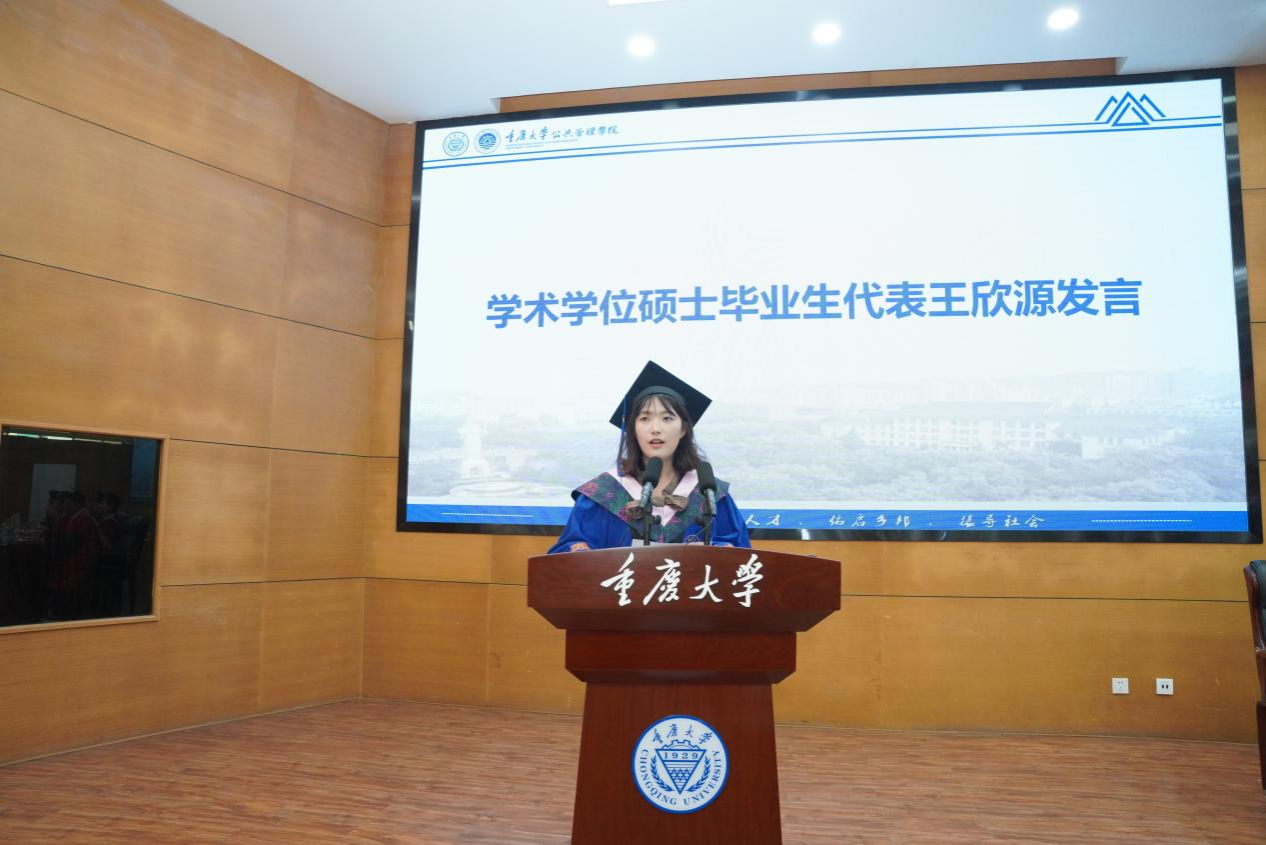 的毕业生,要永远铭记“尚道至公,管泽天下”的院训。未来,无论身处何地,担任何职,定当以积极之姿,迎接挑战,在各自的岗位上发光发热,用所学服务社会,用实际行动诠释重大公管人的责任与荣光!