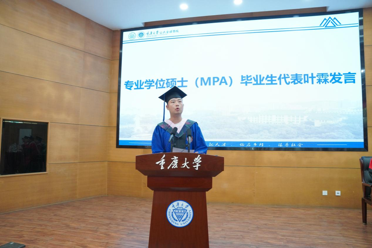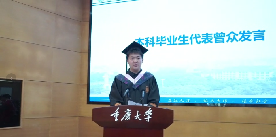 专业学位硕士毕业生代表叶霖发言,他回望了在重大的三年时光,由衷地感恩母校、无码直播