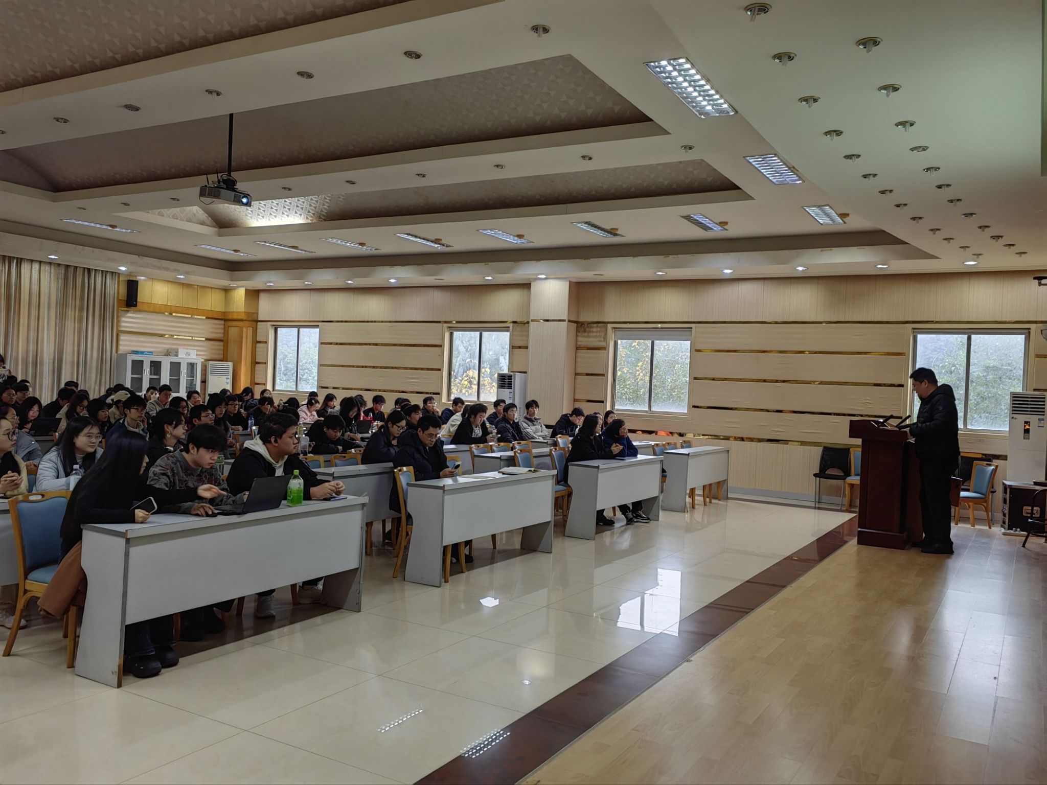 随后,丁从明围绕毕业论文与求职就业两大核心议题展开深度点拨。他指出,毕业论文是本科四年学业成果的集中体现,是青春路上的收官答卷,鼓励同学们提前预留充足时间,制定科学合理的推进计划,以精益求精的态度打磨无码直播成果。在梳理毕业论文关键时间节点的同时,丁从明还为同学们拆解了科学的求职规划时间线,并针对普遍存在的就业焦虑问题给出暖心建议:“不要焦虑,真正的生活是一连串的选择,往往不是一次决定或者行动就能决定最终的轨迹。”他提出“not choice but do”的理念,勉励大家:“大多数让人焦虑的事情其实并不存在,与其纠结未发生的未知,不如聚焦当下,踏踏实实地做好每一件力所能及的事,用实际行动化解压力、积累底气。”他还鼓励同学们在求职路上保持韧性,灵活调整心态,从容应对各类挑战。
