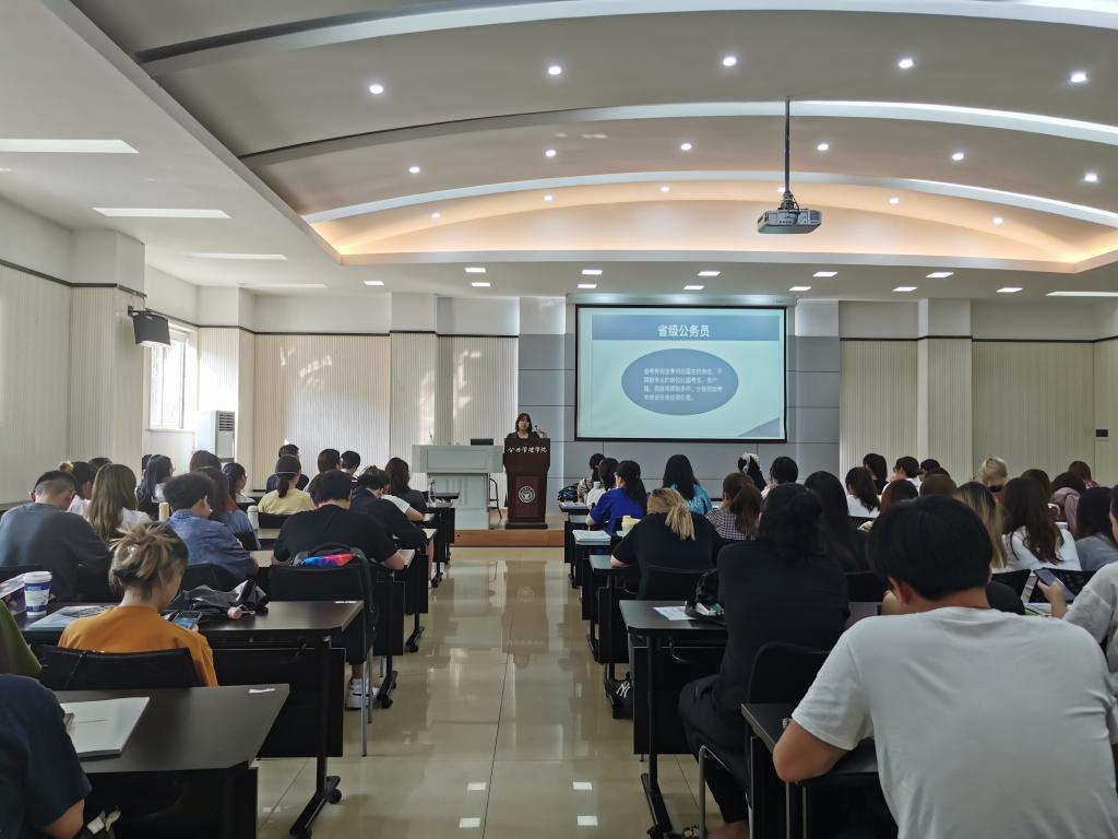 随后,在考公领域有着丰富经验的任老师为同学们介绍了公务员考试的相关资讯并推荐了一些获取信息的网站。同学们在职业规划中要掌握主动权,充分利用好手中的资源,往往充足的信息能为我们带来极大的收益。