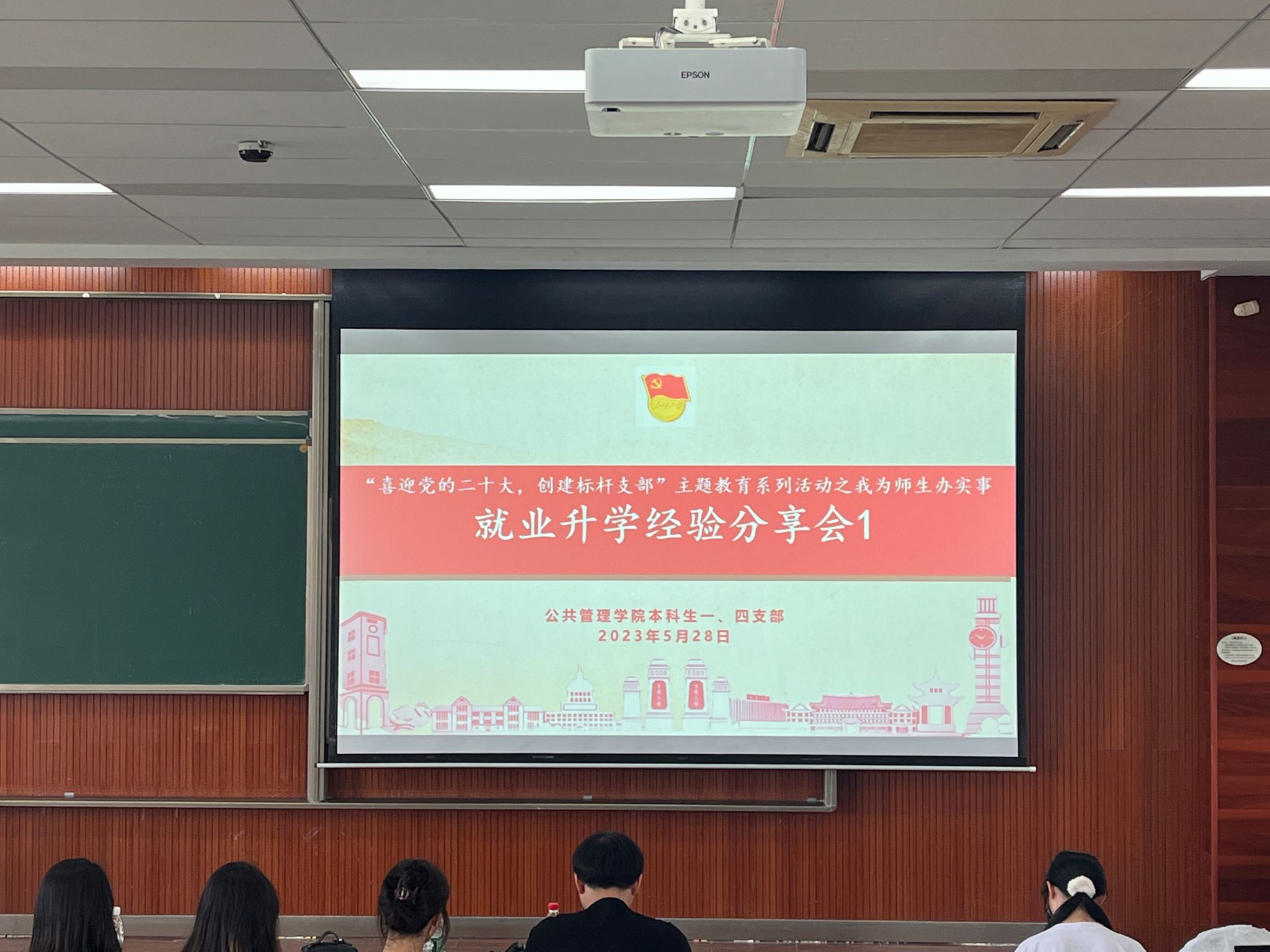 本科生一、四支部于虎溪第一教学楼D1534教室举办“喜迎党的二十大,创建标杆支部”主题教育系列活动之我为师生办实事:就业升学经验分享会。