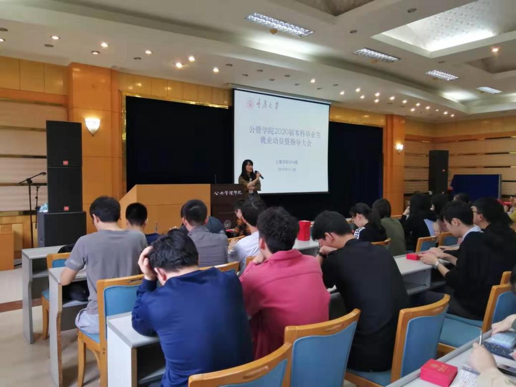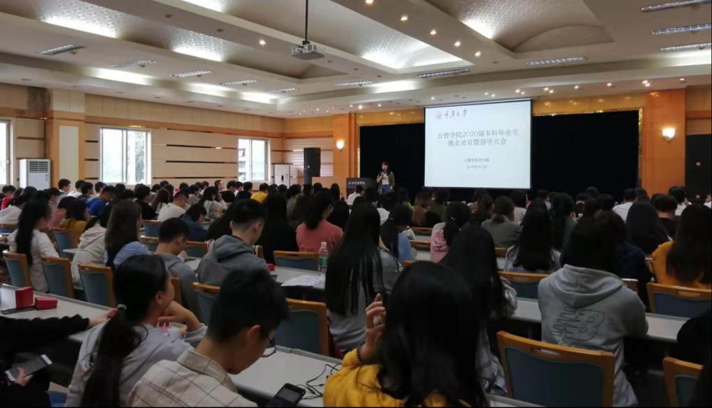 召开2020届本科毕业生就业动员暨指导大会,2016级全体本科毕业生同学参会,大会由2016级辅导员徐柳老师主持。