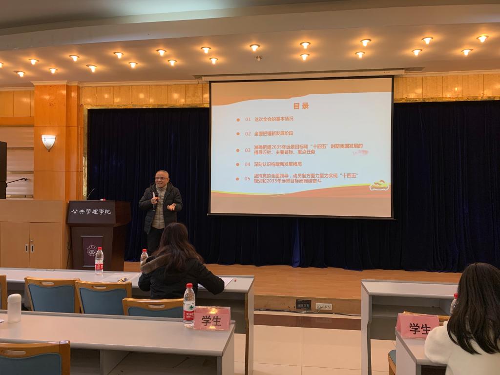 何跃教授作题为“党的十九届五中全会精神解读”的宣讲报告。宣讲报告会由无码直播