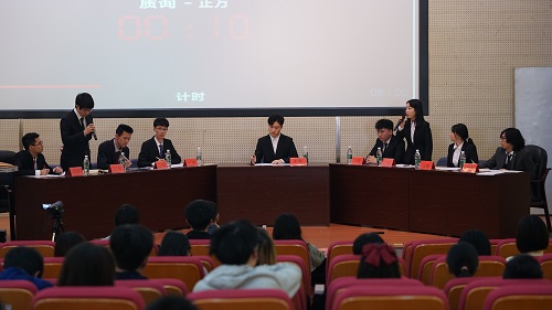 比赛进入破题立论环节,正方将正义定义为一种“朴素的社会共识”,从“迟到的正义可以起到拨乱反正的效果”和“推迟正义的到来可以降低判断失误的可能性”等几个方面进行论述。我方辩手白浩喆同学则首先确立了“迟到的正义”即“未及时发挥作用的正确的裁决”,并认为其违背了正义的核心属性,不利于人们对于正义的维持和追求。双方在定义及判断标准上的分歧使得随后质询环节的交锋变得更加激烈。辩手们才思敏捷,反应迅速,在短短几分钟的时间内抓住立论中值得争议的论点进行了精彩的反驳。