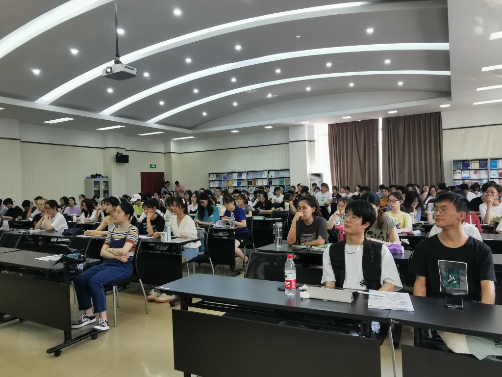 首先上台的是在考研领域深耕了十多年的罗老师。罗老师与同学们简单地互动过后便开始介绍近年来研究生的考试情况。通过对往年数据的对比分析,同学们直观地了解到了考研领域愈演愈烈的竞争形势。在对往届学生考研的案例分析中,罗老师还详细介绍了同学们在备考过程中容易疏漏的地方和值得注意的事项。有了学长学姐们的前车之鉴,希望同学们能够在准备考研的过程中有效避开这些误区。鉴于到场的同学都刚进入大三,对考研的过程不够了解,罗老师还耐心地介绍了从备考到正式参加考试的具体流程,包括择校策略、重要的时间节点以及不同专业的考试科目安排等。
