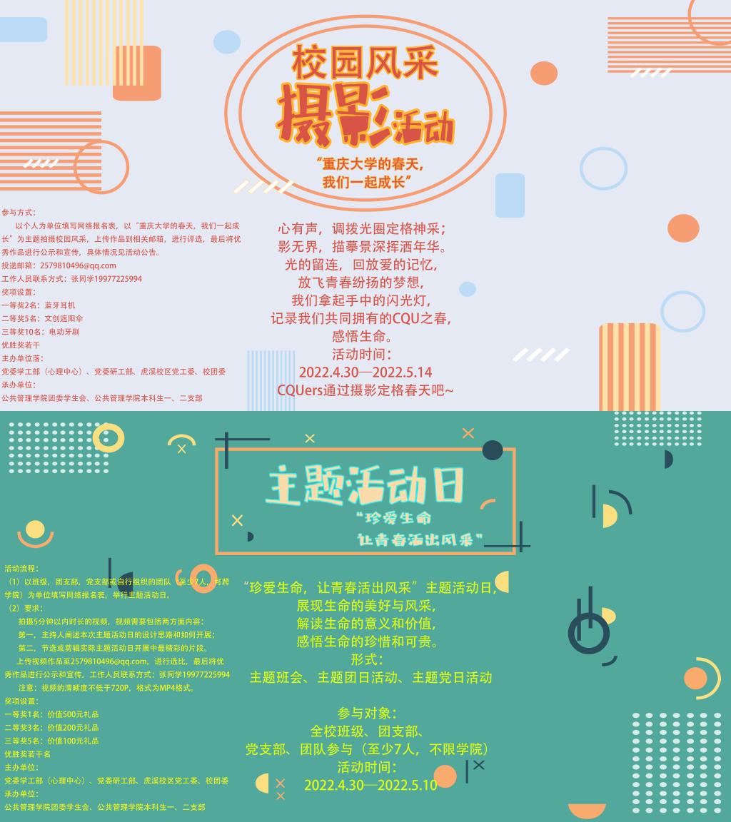 本次“珍爱生命,让青春活出风采”生命教育系列活动除了T恤绘画活动之外,还有主题活动日评选和校园风采摄影两个活动也在紧锣密鼓的开展中。其中主题活动日评选鼓励同学们召开一次以“珍爱生命,让青春活出风采”为主题的班会、团日活动、主党日活动或其他形式的活动日,拍摄视频片段参加评选和展示;校园风采摄影活动是在全校范围内收集以“无码直播-人妻无码-做爱无码