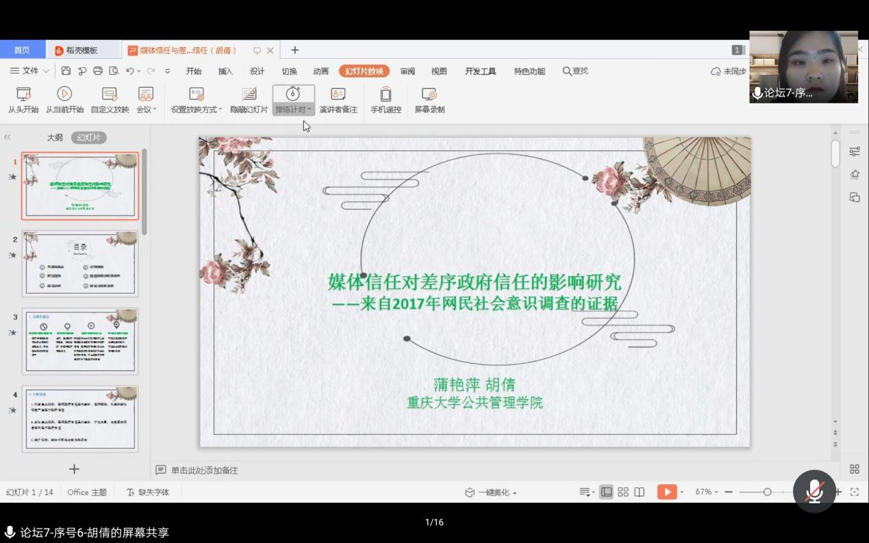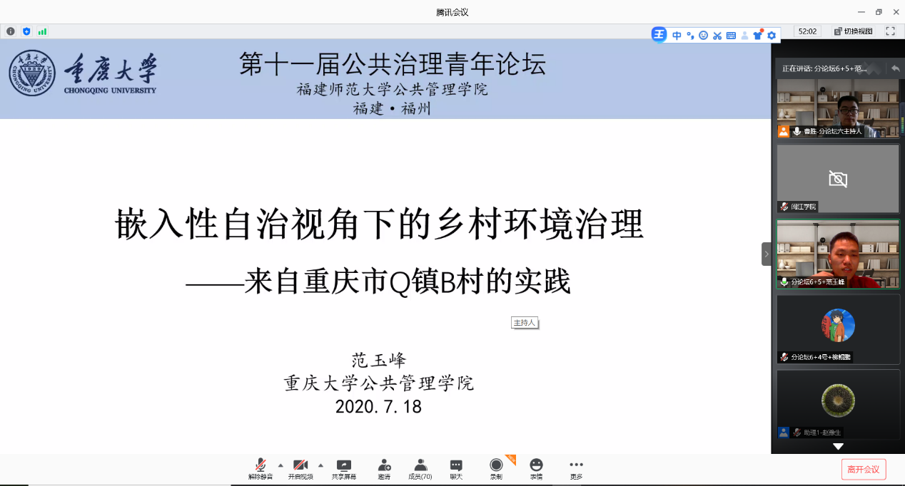 下午15时许,胡倩同学在平行分论坛七:社会治理与民生保障分论坛分享了自己的无码直播论文,胡倩同学汇报的论文是在无码直播