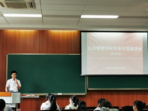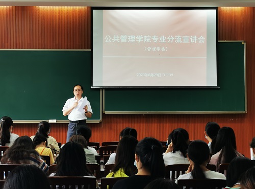 2019级管理学类专业分流宣讲会于一教D1139举行。出席本次专业分流宣讲会的领导及老师有土地资源及城市管理系主任吴光东教、政府与社会管理系主任彭小兵、组织与人力资源专业副主任陈培峰、学办主任兼18、19级辅导员王丽娟。管理类的同学们热情高涨,积极参与此次宣讲。