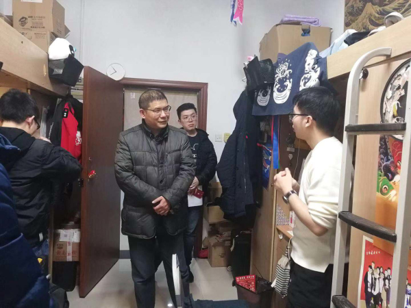 党委副书记袁晓浩和各年级辅导员走进学生宿舍开展走访检查。在检查宿舍环境卫生、学风氛围之外,重点对存在的安全隐患进行了排查,要求同学们务必提高安全意识和防范能力。期间,袁晓浩还就近期学习、生活情况和同学们亲切交流,针对刚刚结束考研或正在求职就业的毕业年级同学,提醒他们放平心态、保持自信,做好下一阶段准备;针对期末考试密集的其他年级同学,要端正学习态度,提高复习效率,积极诚信应考,同时也注意劳逸结合、缓解压力。他要求各年级辅导员随时关注学生思想动态和生活情况,及时给予必要的关怀和帮助,切实做到防患未然。