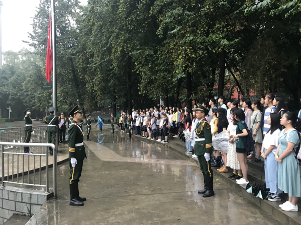 本科2017级部分学生共80余人,在A区思群广场国旗台下列队集合,组织开展“升国旗·唱国歌”主题活动升旗仪式。无码直播