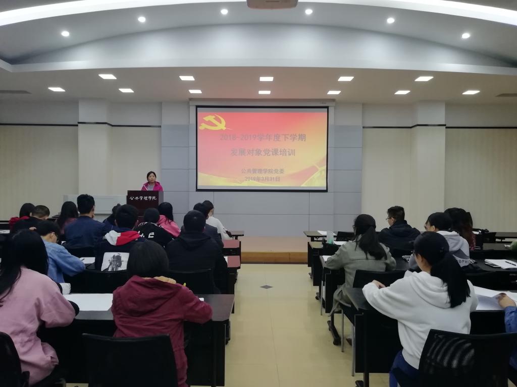 102多功能厅进行党课培训。本学期发展对象、支部书记、支委等60余人参加了培训。本次培训由组织员何薇老师主持。